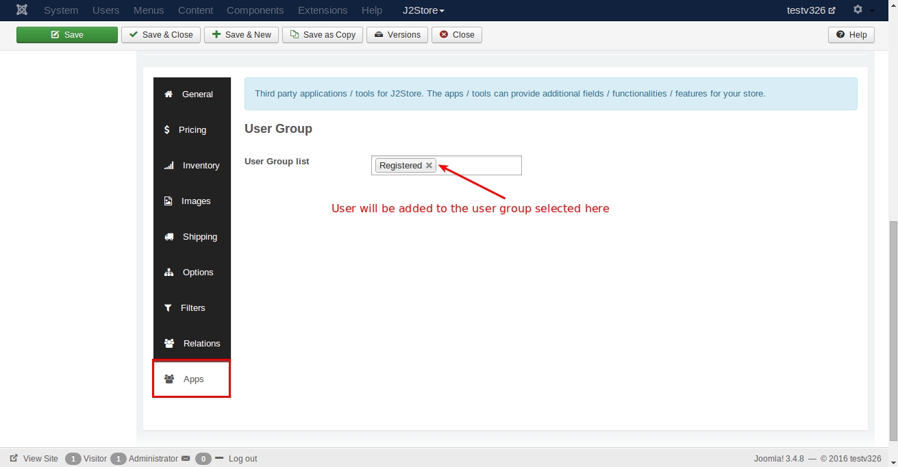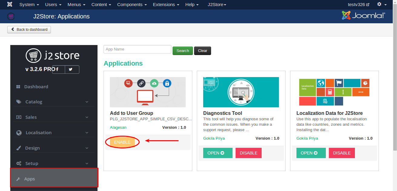 In the backend, go to J2Store Dashboard -> Apps as shown in the image below.