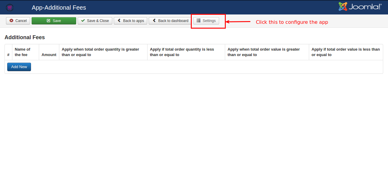 4. Once the app is enabled, open the app to configure the settings and to setup the additional fee.
