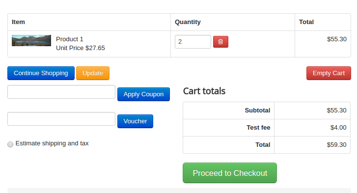You can choose whether the additional fee should be applied based on cart or per product level.