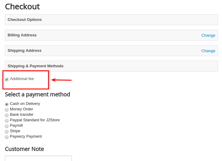 Name of the fee: Enter the name for additional fee. The value given here will be displayed during checkout.