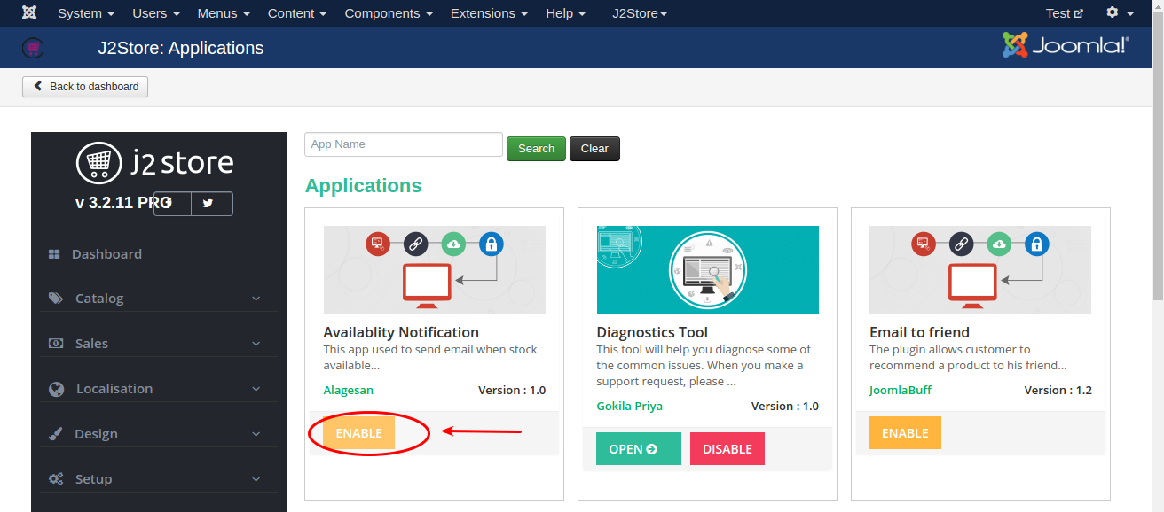 1.)Use the joomla installer to install the app. 2.)Go to J2Store > Apps, find Availability Notification app and click enable to activate the app.