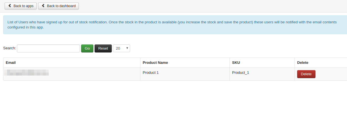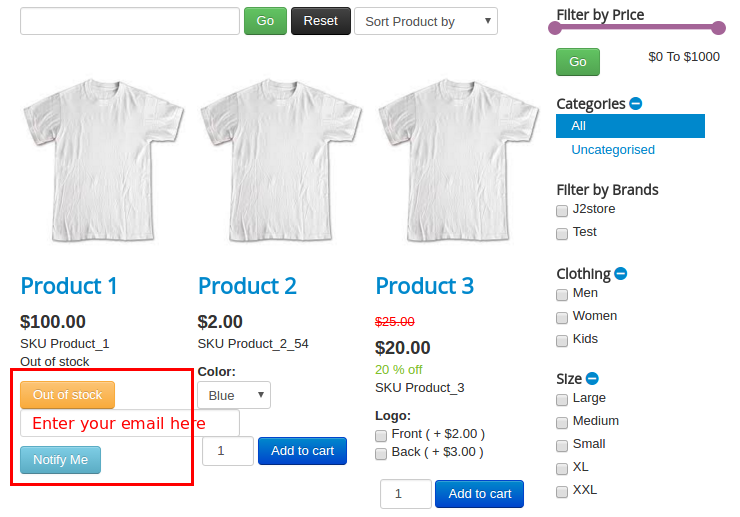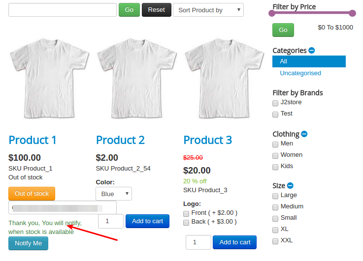 This app allows store owner to notify customer regarding stock availability. If product’s stock goes to “OUT OF STOCK” then Notify Me button will be generated where customer can type his / her Email id and click Notify Me. So when product’s stock becomes available, customer get an email notification.
