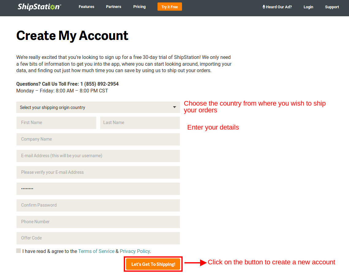 Creating an account with Shipstation