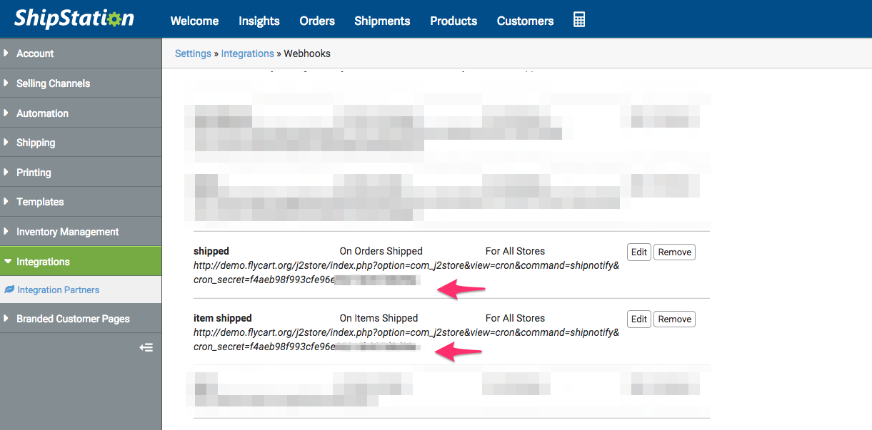 Webhook URLThe webhook URL to be specified in the shipstation account’s integrations part is provided here.