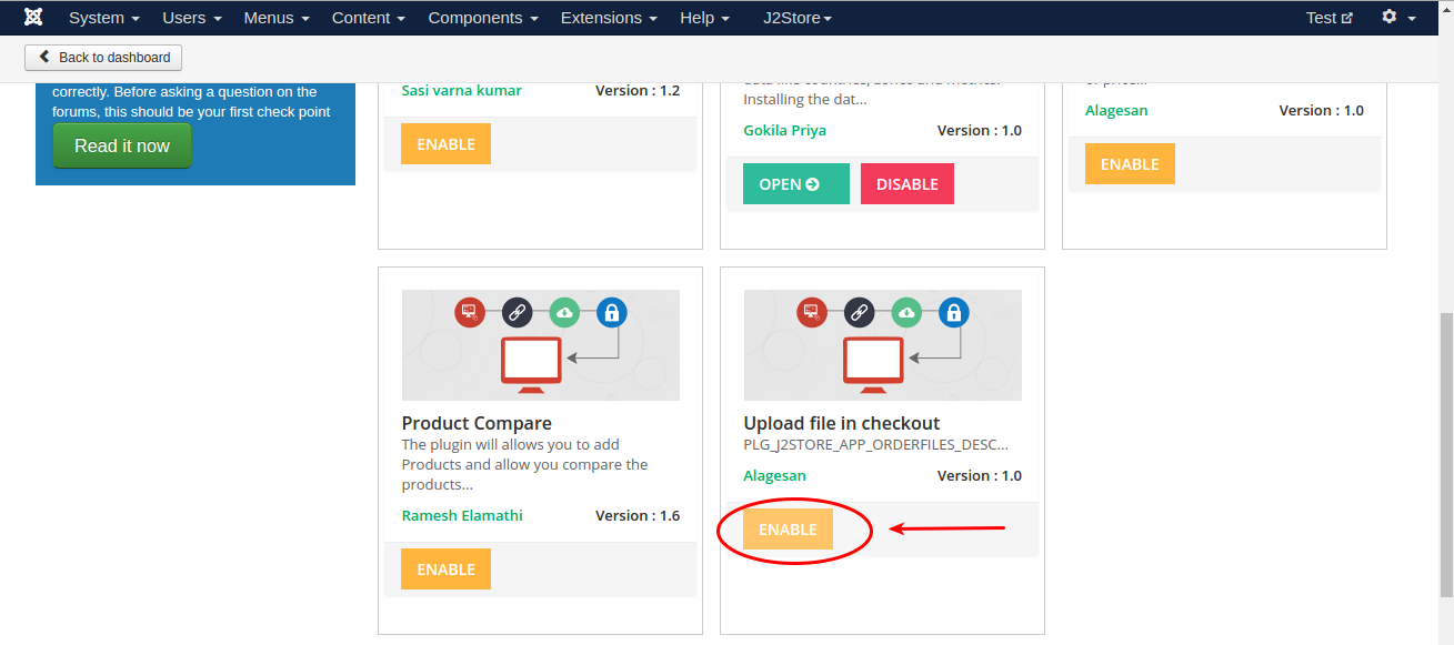 In the backend, go to J2Store Dashboard -> Apps as shown in the image below.