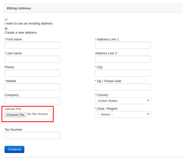 Choose the place where the upload field should be displayed. You can choose eitherBilling or Shipping.