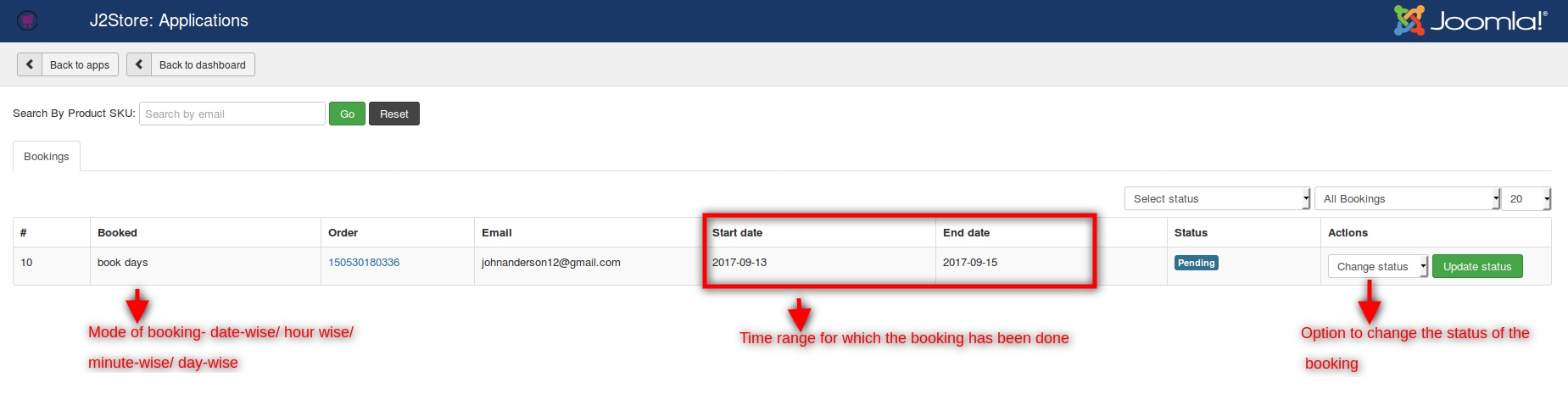 Clicking on the manage bookings option will allow you to manage the bookings that have been made by the users.