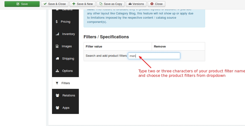 It will display the search results in dropdown. Choose the filters from dropdown and save the product.