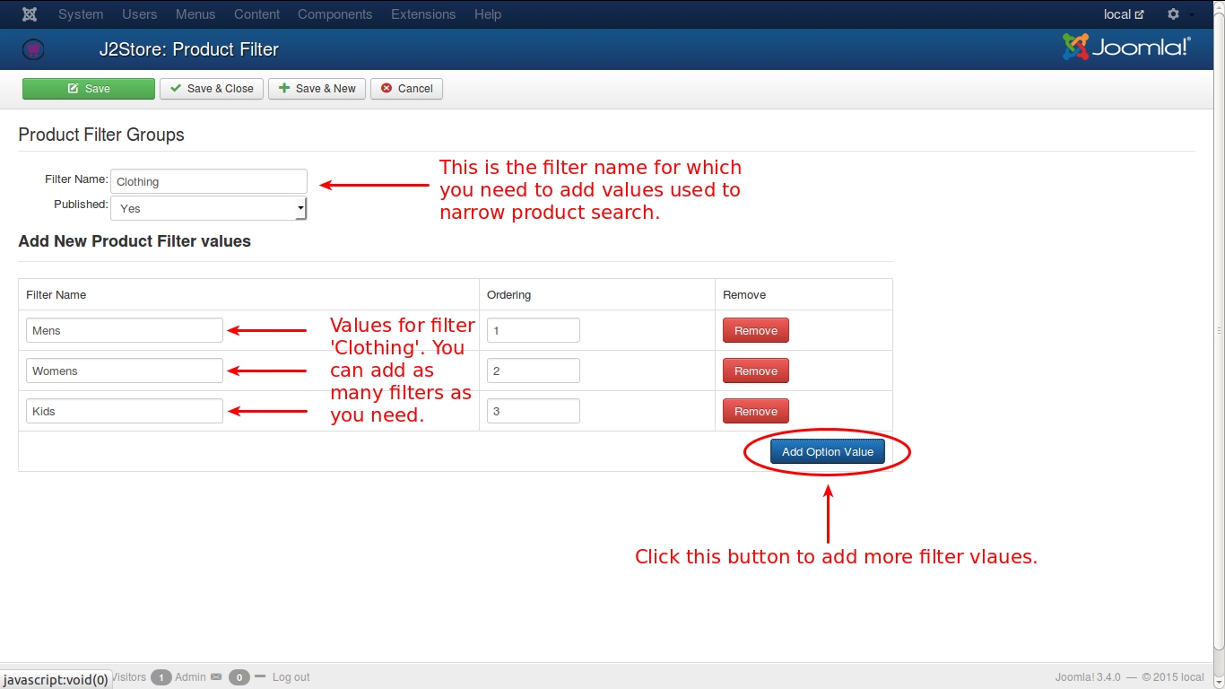In this page, first Fiter Groups are created and in each group some Filter Names will be added, and based on the Filter Name, products will be searched.