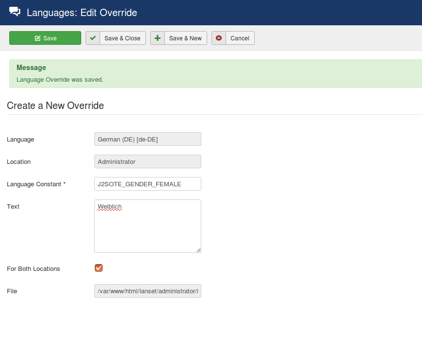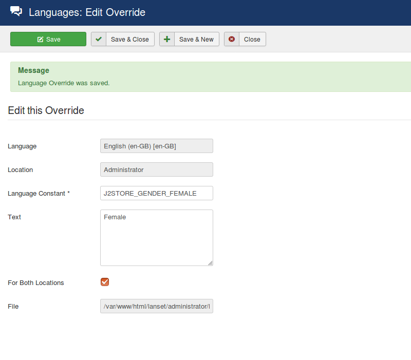 Click the new button and create a override for the constant: J2STORE_FILTER_GENDER