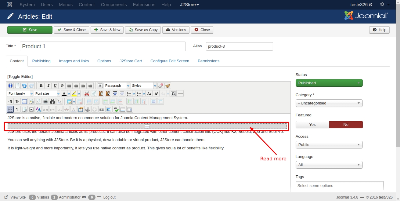 The Article manager divides the text (content) into two and saves it based on the readmore break.