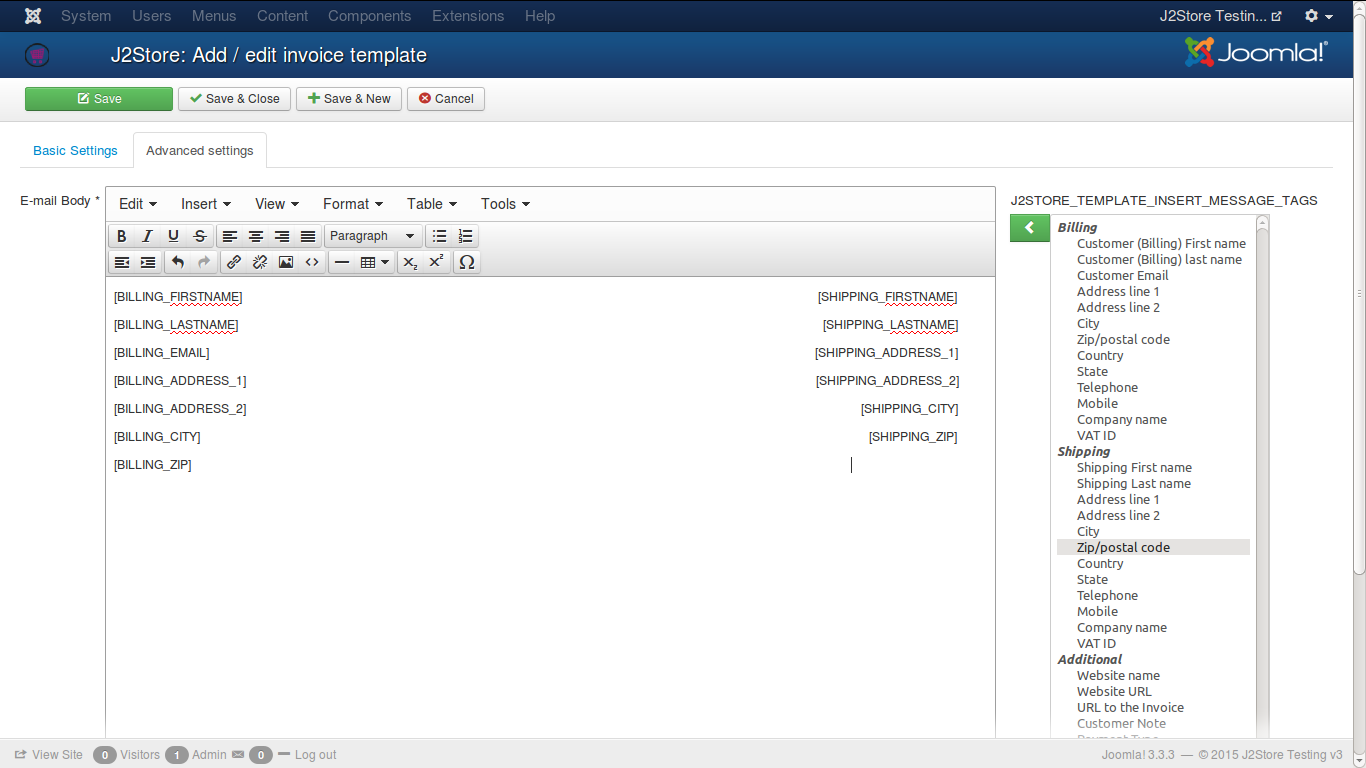 Using the short codes, you can add customer name, order no, order date, payment details, shipping details, product details etc. This is can be accomplished by adding suitable tags listed in the extreme right area of the page.