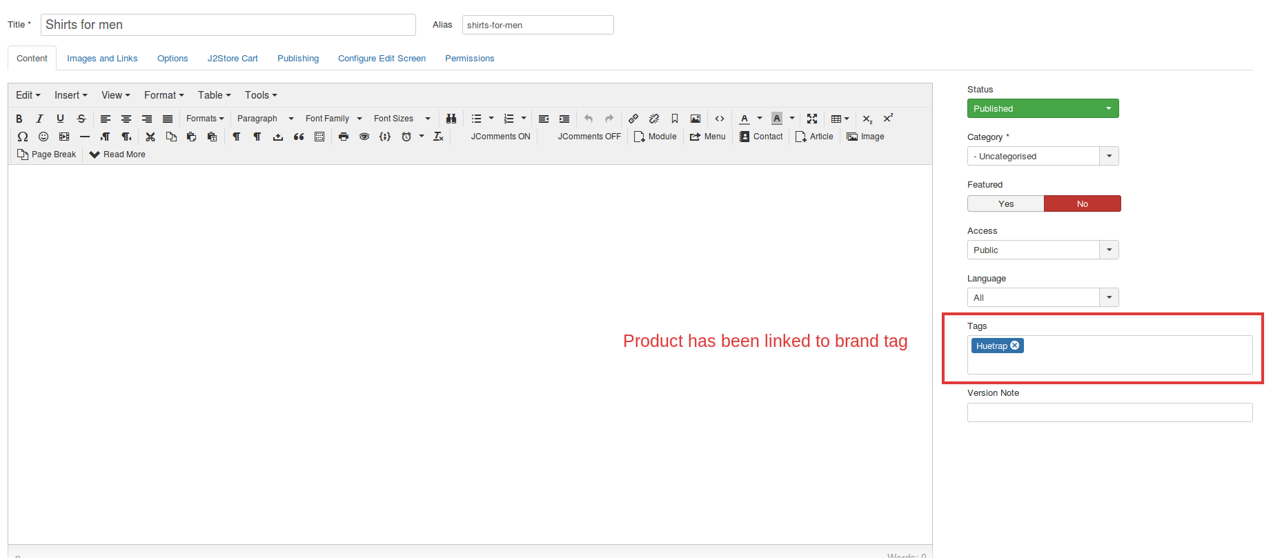 Create tags that you wish to link with the product.