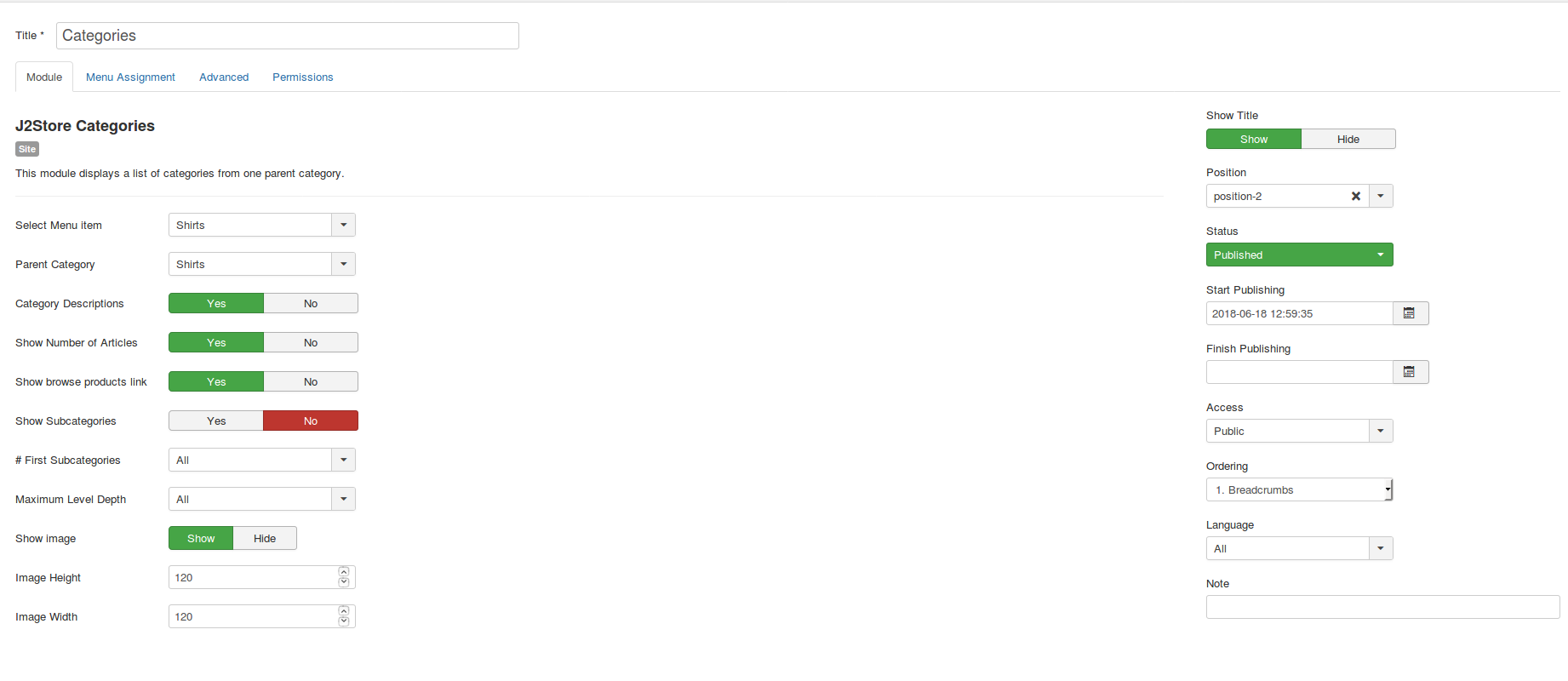 Select Menu item Choose a menu item whose associated categories should be displayed on the module. Please note that you should have a menu item with the J2Store layout.