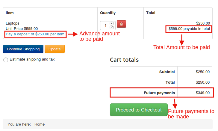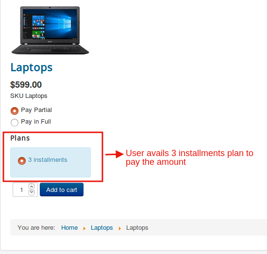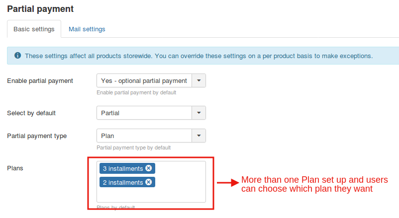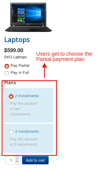 And there is an advantage too.You could add more than one plans using partial payments app and let the user choose on which plan he would like to pay.