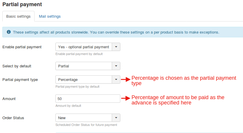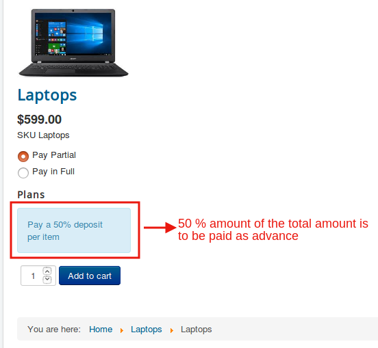 Here with this type of partial payment too, you have the liberty to specify the percentage of amount that the user has to pay.