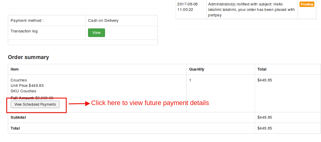 So now that the user places the order and completes the first installment,you might wonder how the rest of the payment would be kept track of.