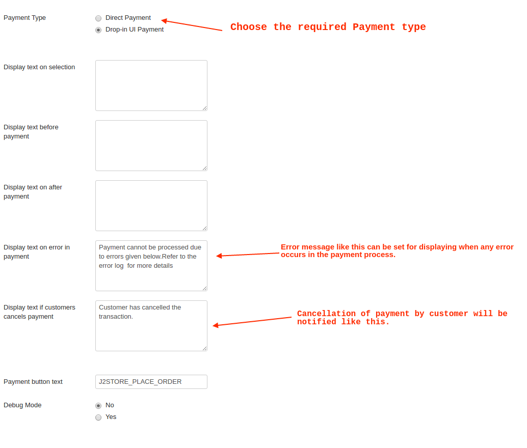Debug Mode: Setting debug mode to yes will allow the errors to be logged in case of transaction failures.