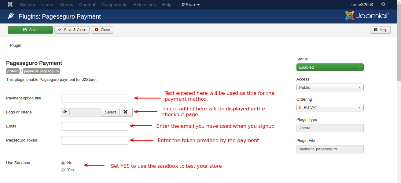 This plugin integrates Pagseguro payment gateway with J2store. PagSeguro is an e-commerce tool that mediates payments for both sellers and buyers. It offers different paying methods to the buyers.