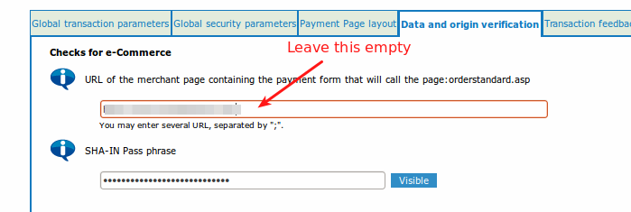 URL of the merchant page containing the payment form that will call the page: orderstandard.asp: Leave the data origin url empty