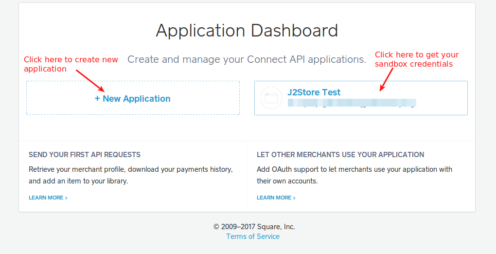 If applications exists, Click the application you want sandbox credentials for, then refer to the Sandbox section at the bottom.
