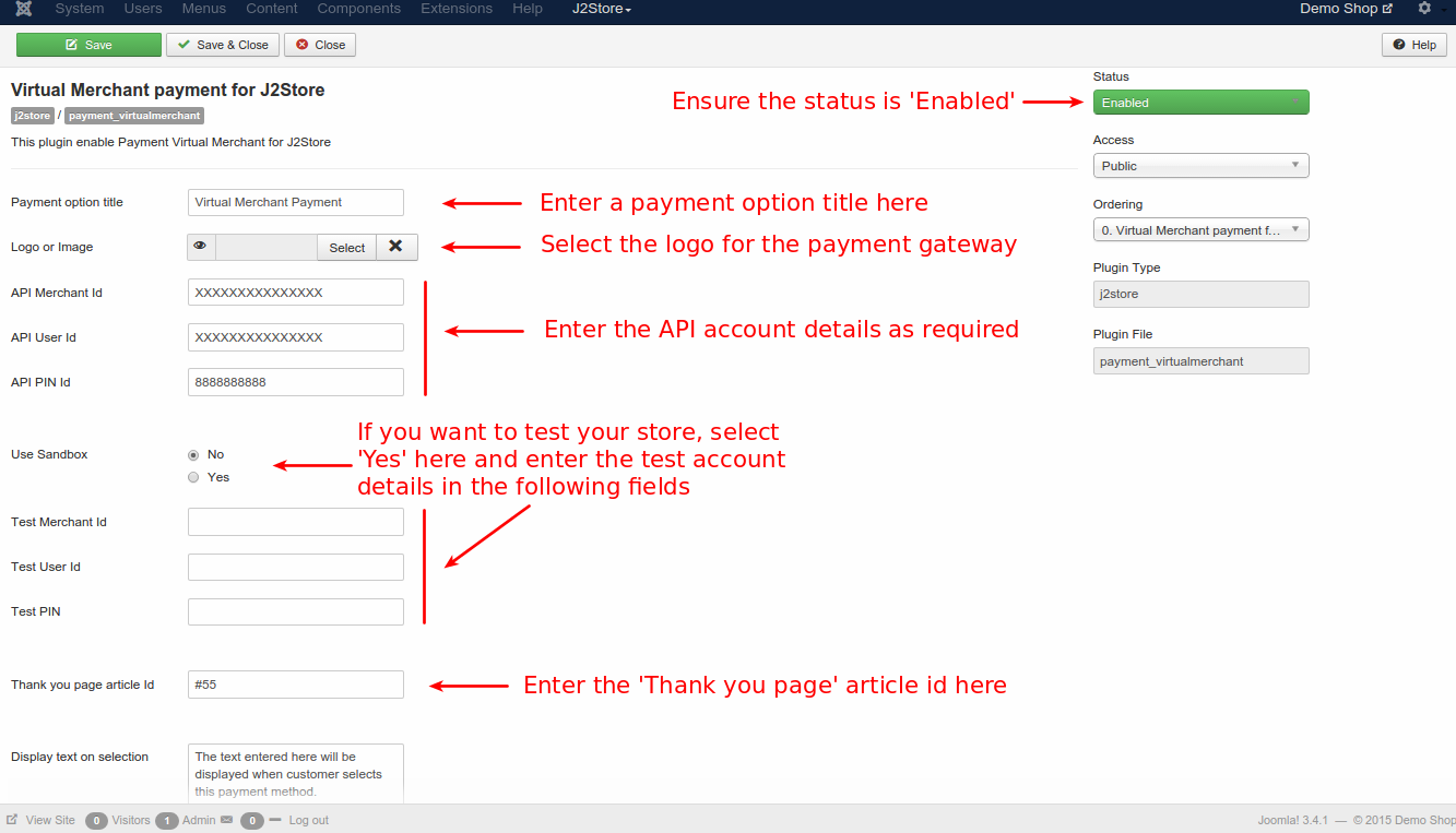 You can configure the payment plugin with the help of the images below: