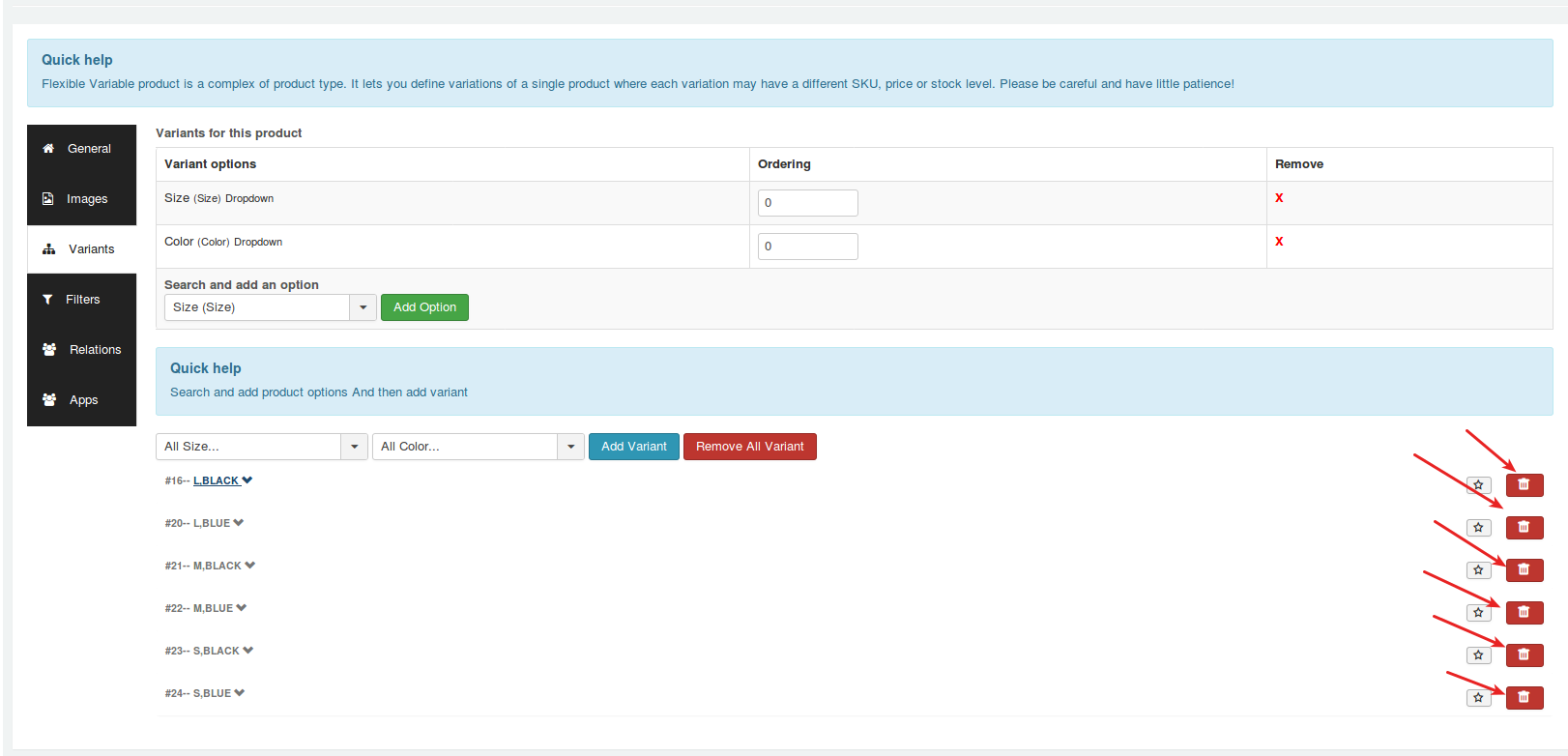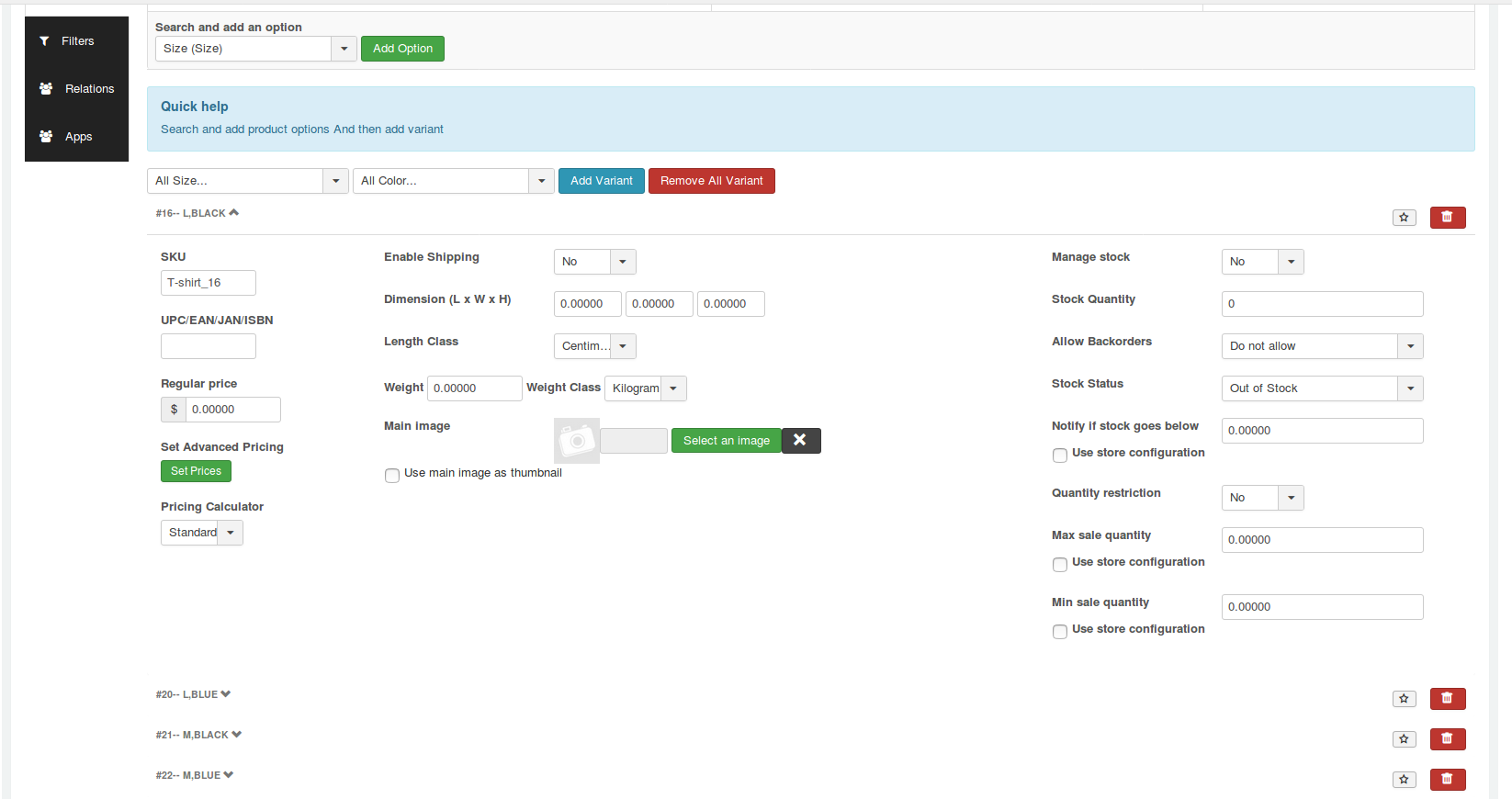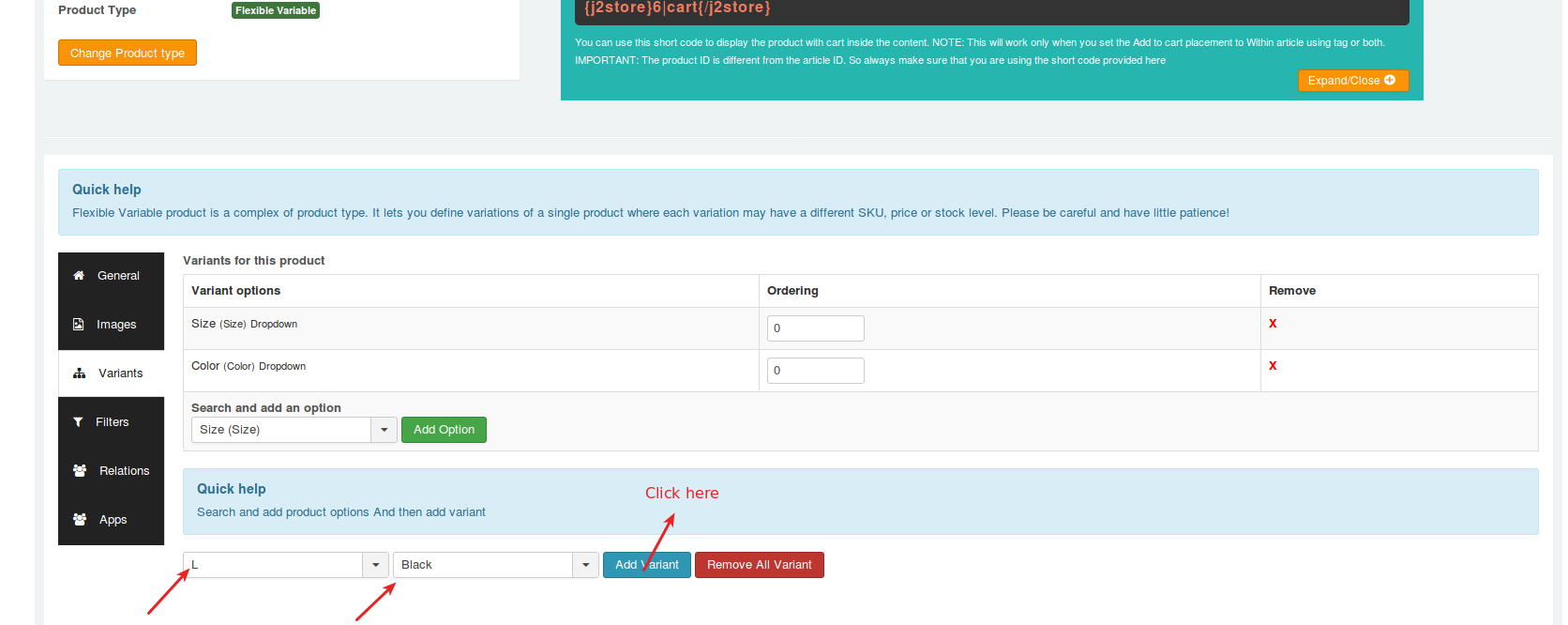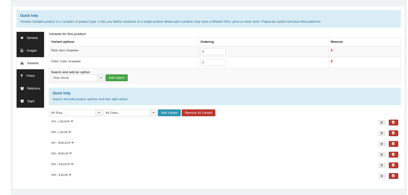 For example, select L from size and select Black from color and click on Add variant button.Likewise, add all the variants you want.