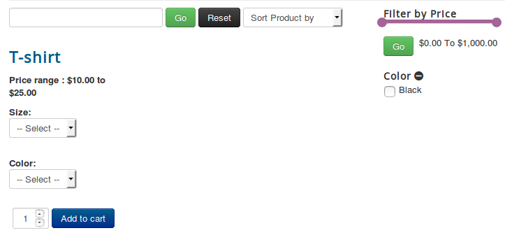 For e.g., assume that a customer searches for purple t-shirts in the store. Now, the product filter is set as color > Black, to narrow the search. See the image below: