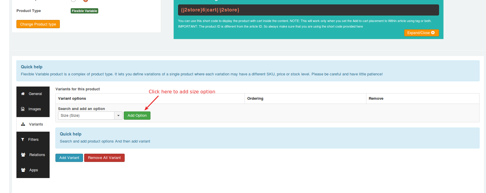 Select size option from the dropdown list and then click on Add option. The size will be added as variant option.