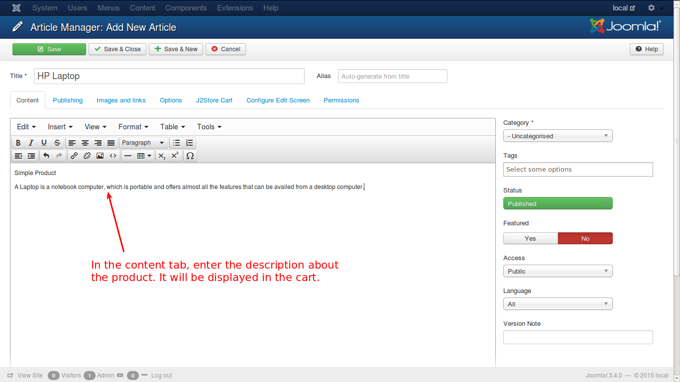 J2Store implements an innovative concept in creating products. It uses the Joomla articles as products. So to create a product is to create an article.