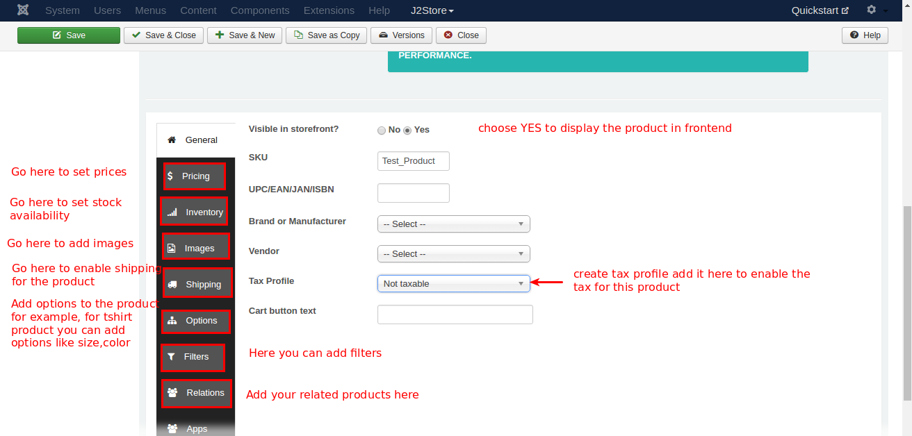 After saving, again go to J2store cart tab. Now you can see the options to add image for product, set prices, add filters / Tax / Shipping.