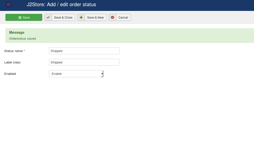 You could also create custom order statuses by clicking on the New button under J2Store->Localisation->order statuses->New as indicated in the screenshot below:
