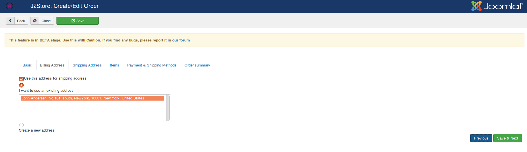 Now you are in Billing Address tab. Under this tab, choose the billing address of the customer or create a new one and then click on Save & Next.