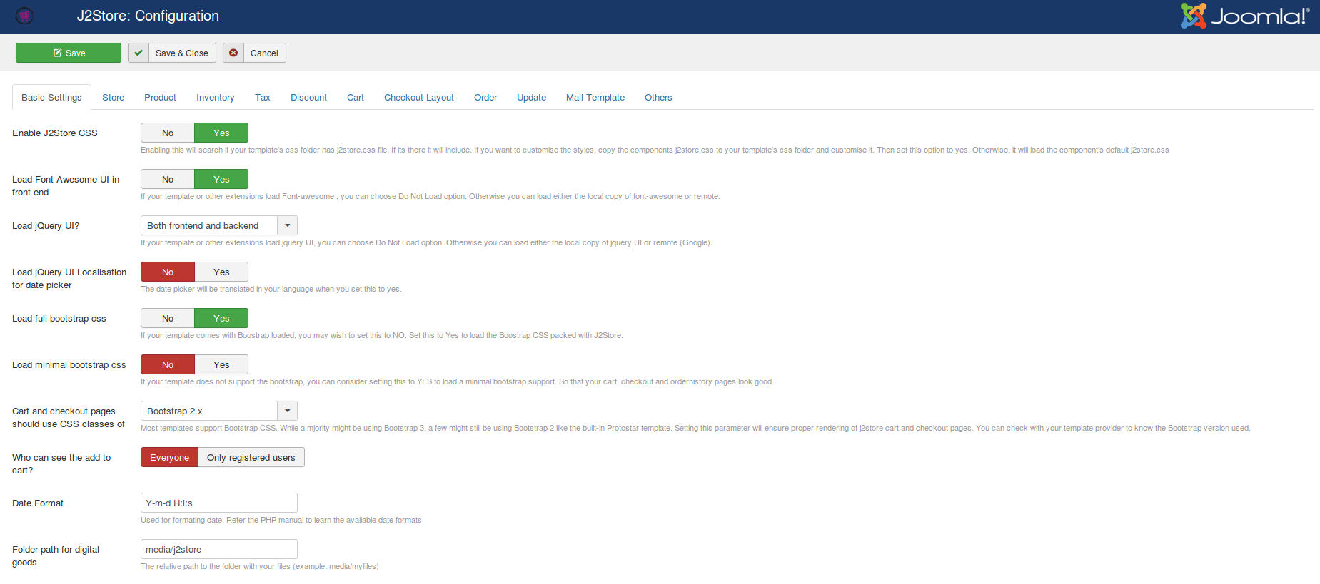 If this option is enabled, J2store loads the j2store.css file for customizing the template style. First, this will look in to the template CSS file. If it is not included, then J2Store loads it own J2Store.css file.