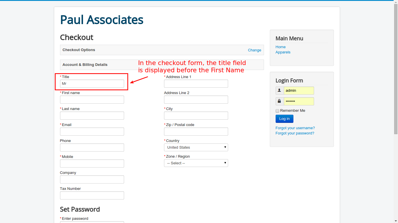 Now, in the checkout process, the added custom field Title will be displayed before the First Name field, as illustrated in the following image: