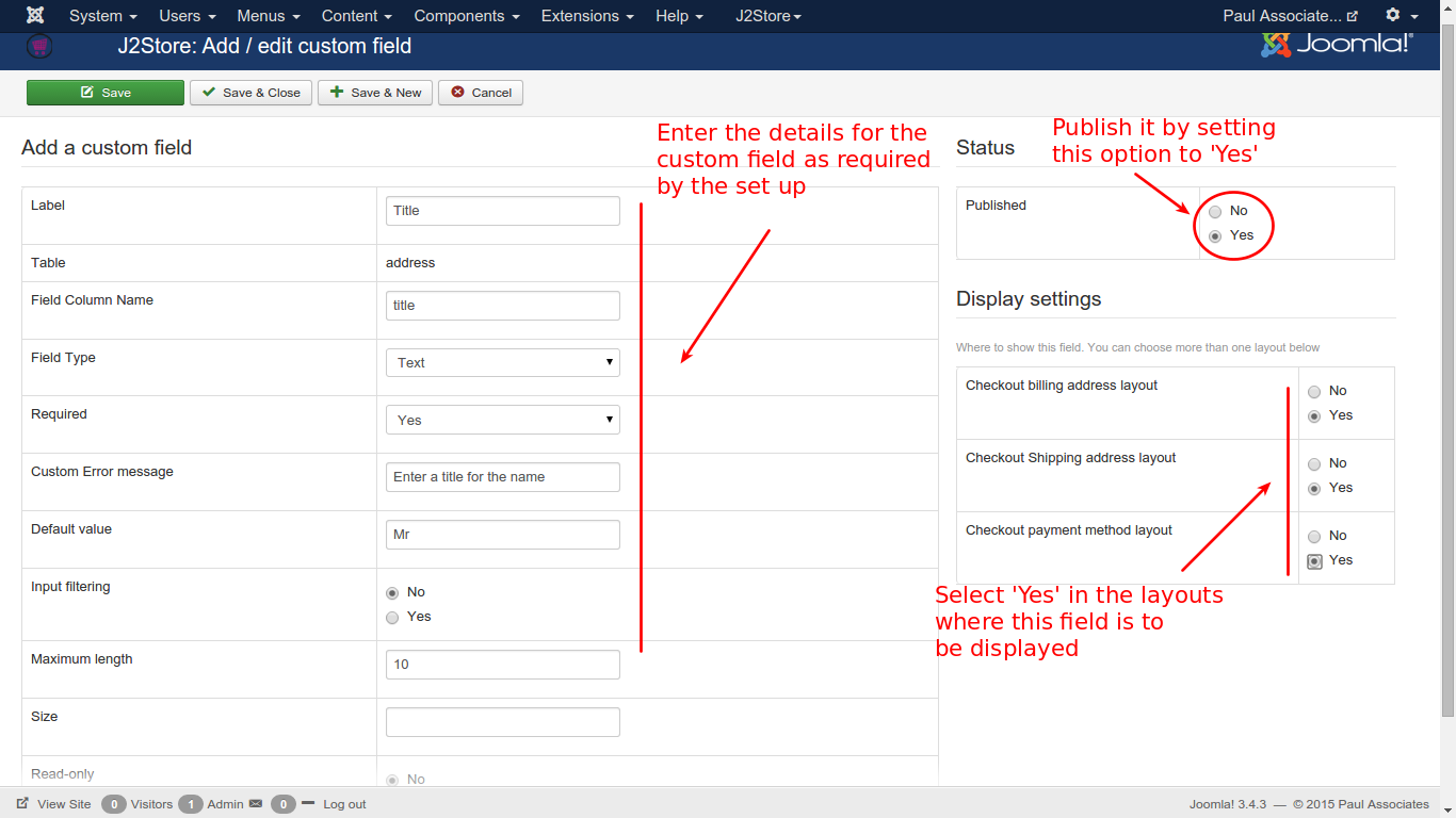 Enable Shipping address fields If the product has to be shipped to an address different from the customer’s billing address, it can be added by selecting this option to Yes.