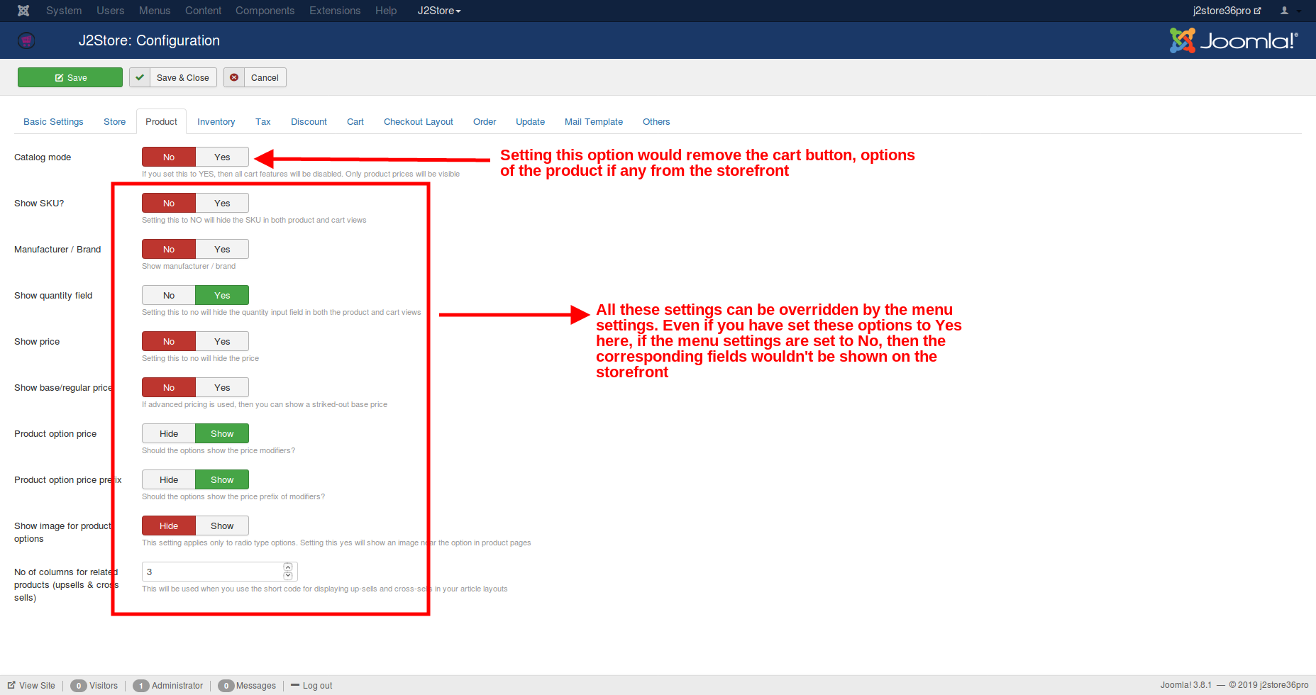 These are global parameters for product display. You can override some of these parameters if you are using the J2Store’s product layout.