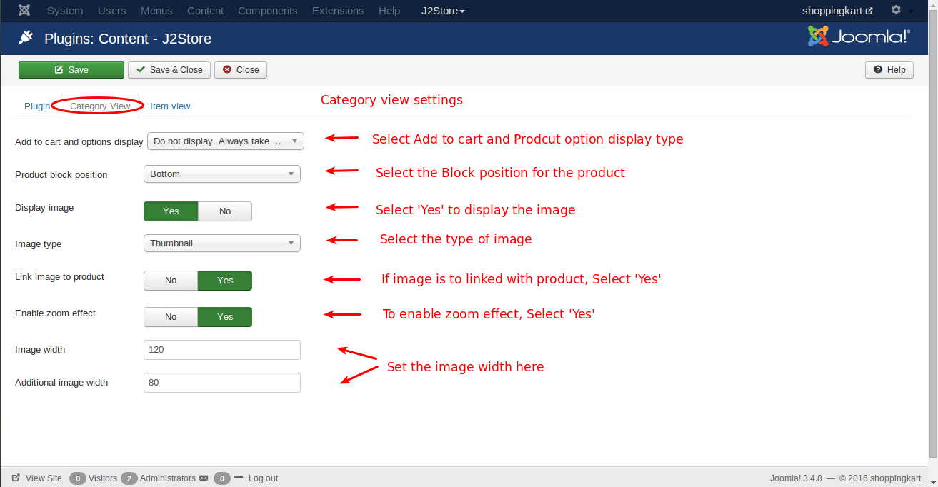 To control the display in the cart section, to show or hide the images, enabling zoom effects etc., some settings have to made in advance to achieve the desired results. The content plugin settings would also take effect when you have displayed your products using short code on the Joomla layout. This section explains about how the settings can be made.