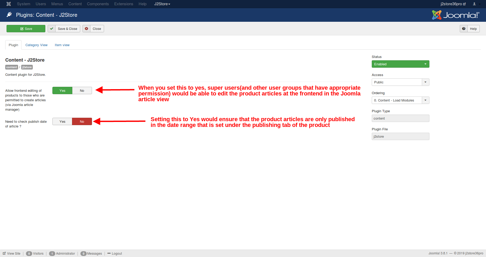 You would see the following window where you could allow frontend article editing. When the option is set to Yes, the users with appropriate permissions would be able to view the J2Store cart tab on the product articles on the frontend.
