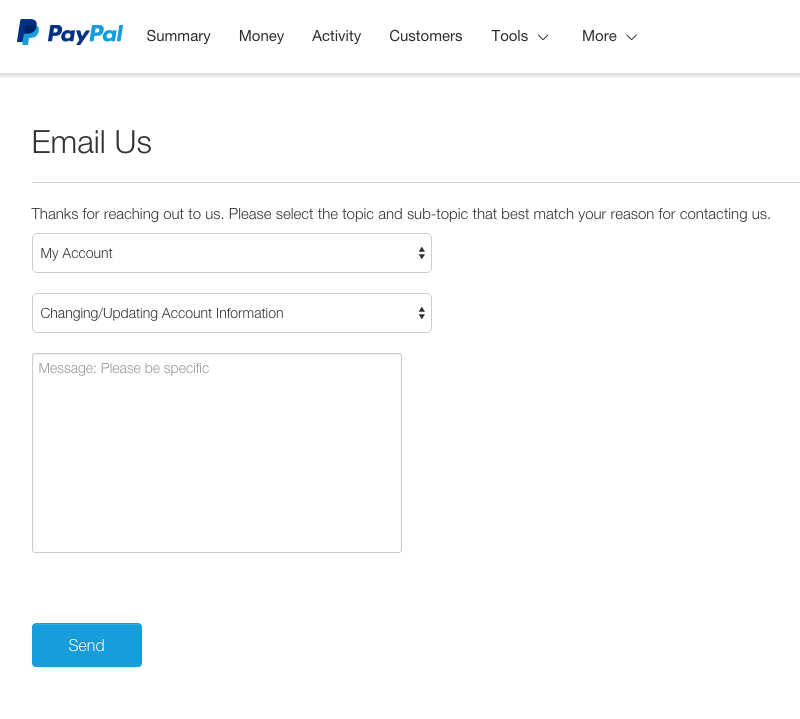 You can also contact PayPal via email.