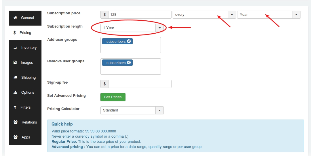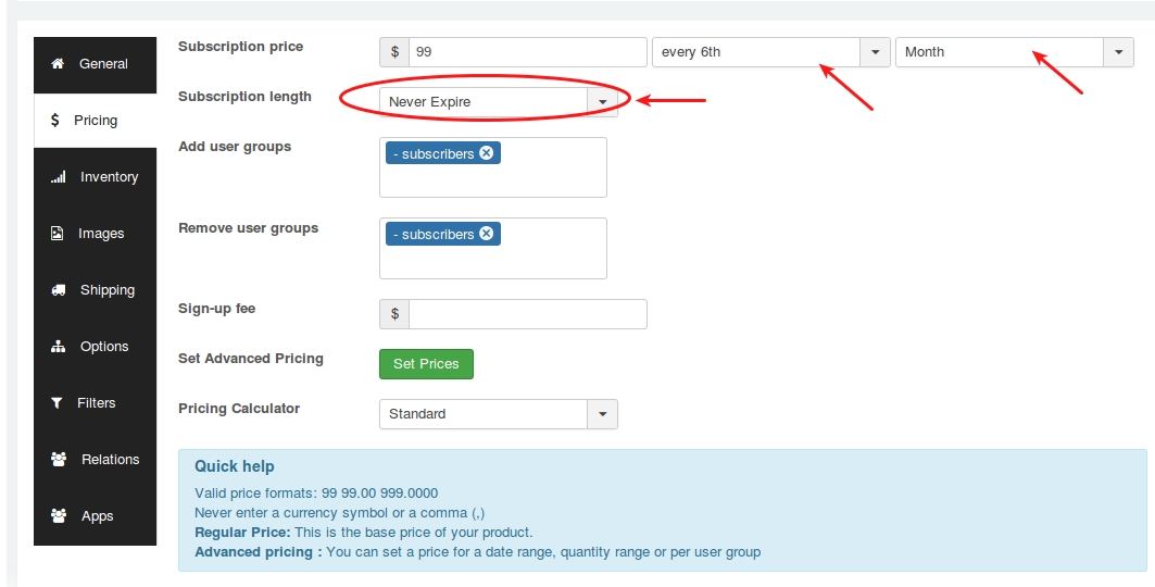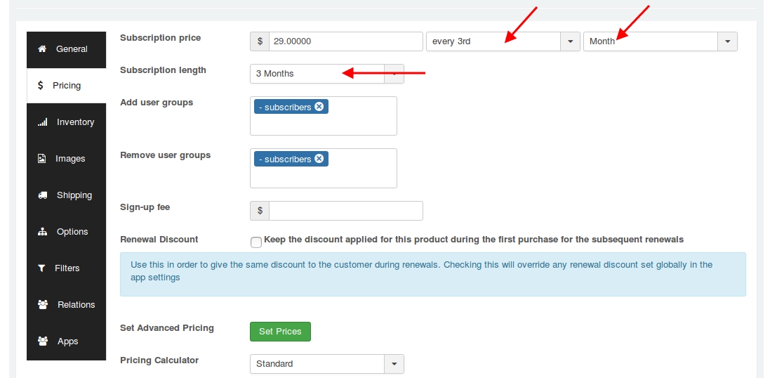 Refer below screen shots for setting non-recurring 3 months subscription plan