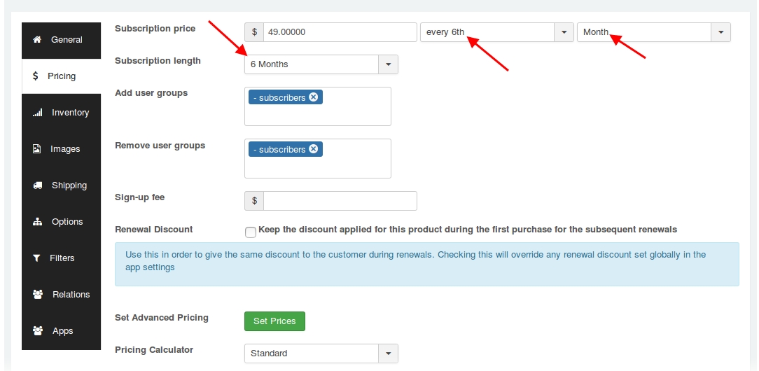 Refer below screen shots for setting non-recurring 6 months subscription plan