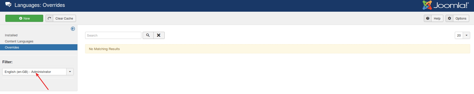 Go to Extensions > Languages > Overrides and set the filter to Administrator location and then click New.