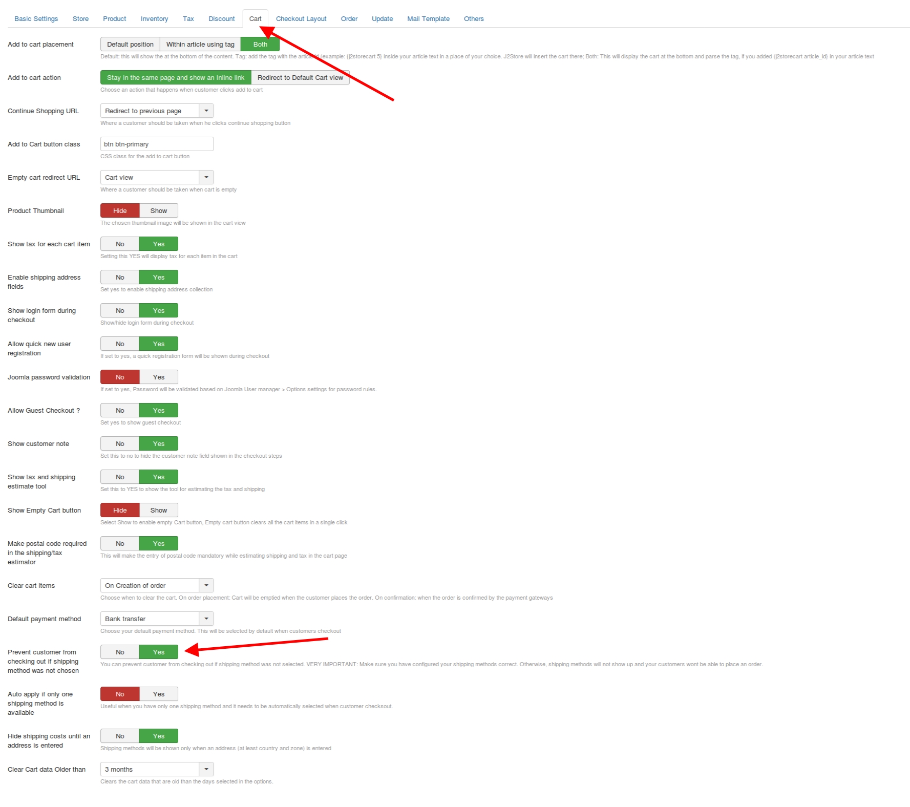 VERY IMPORTANT: This option should be set to Yes only if you have shipping methods configured and want to stop the user from creating an order without selecting the shipping costs. If not, this might block the checkout process.