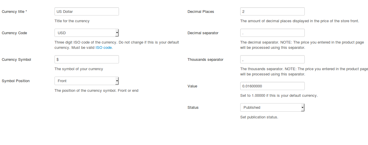 Value: 0.061 (You can enter any value less than 1. Once saved, J2Store will automatically contact Yahoo Financial services and update the correct exchange value )